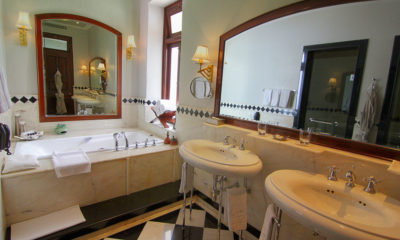 Découvrir ces lieux est assurément un privilège : les dépendances du palais ne sont accessibles qu’aux hôtes de l’Ananda. Les chambres, situées sur les anciens vergers du maharaja, sont autant de nids d’aigle tapissées de marbre vert. La plupart d’entre elles regarde la vallée : le Gange, Rishikesh, et plus loin une succession de chaînes vaporeuses disparaissant dans l’Himalaya.