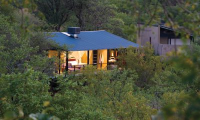 Premier lodge à avoir vu le jour dans cette zone, vaste de plus de 59’000 hectares, son architecture résolument moderne mélange acier, toile, verre et aluminium en s’intégrant parfaitement au paysage. Disposées le long d’une passerelle qui longe le flanc de la colline, les douze suites s’ouvrent à 180° sur une vallée tapissée de baobabs millénaires.