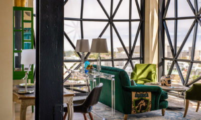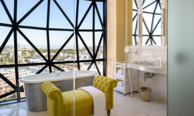 Les fenêtres multifacettes en verre convexe, insérées dans la géométrie des étages, transforment le bâtiment, la nuit, en une sorte de phare lumineux dans le port de Table Bay. Le top, c’est bien sûr le Penthouse du dernier étage : 211 m2 de luxe total avec un balcon donnant directement sur la Table Mountain!