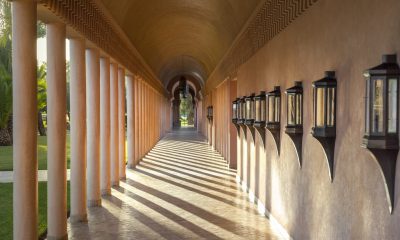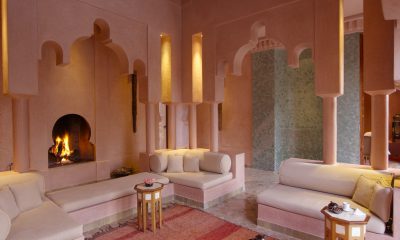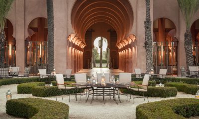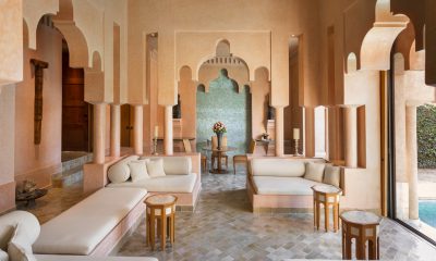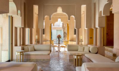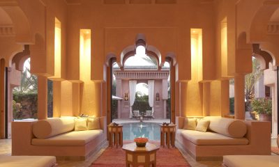 Conçu par l’architecte Ed Tuttle en plein cœur d’une palmeraie, l’Amanjena, premier hôtel de la chaîne asiatique Amanresorts implanté en Afrique, forme une sorte de petit palais rappelant le pavillon de la Ménara.