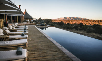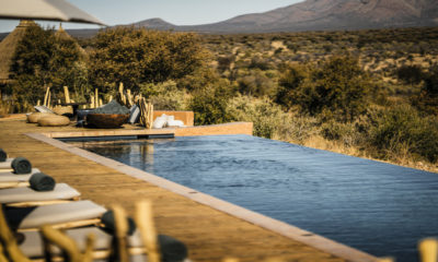 Tirant son nom du mot rhinocéros, dans la langue locale Oshivambo, Omaanda Lodge est situé dans le maquis semi-aride d’une réserve privée de 9.000 hectares, elle-même proche de la réserve animalière de N/a’an ku sê.