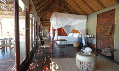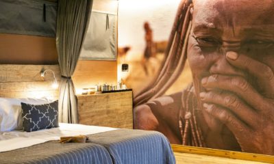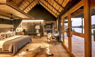 Une grande terrasse privative permet de se relaxer ou de prendre ses repas tout en profitant du spectacle de la rivière. Le design est confortable, moderne, combine des éléments nouveaux tout en conservant l’âme de l’ancien camp, alors que d’immenses photos d’Himbas parsèment les lieux.