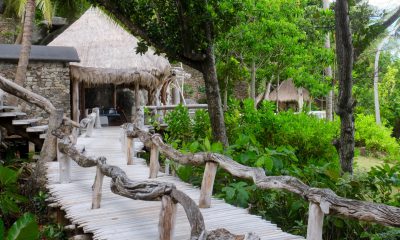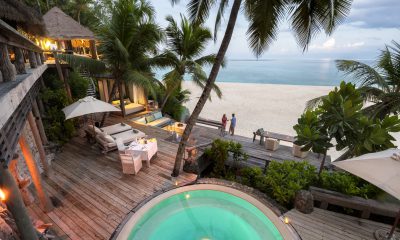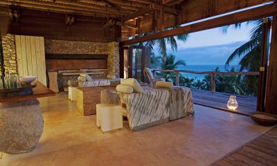 L’île abrite 12 sublimes villas disposées face à la mer, dont le style rappelle la décoration ethnique africaine. Immenses et construites en bois brut, pierre volcanique, troncs d’arbres flottés, toits de palme et fibres naturelles, elles proposent toutes de larges ouvertures sur la nature, des salles de bain extérieures, des terrasses en bois avec piscine et de vastes sofas invitant à la paresse…