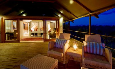 L’hébergement consiste en douze tentes de style safari avec salle de bain attenante et douche, ainsi qu’un patio privé qui donne sur la rivière avec ses rapides et sa myriade d’îles. La décoration intérieure y est très chaleureuse, l’extérieur très sauvage avec de grands arbres comme les Jackalberry ou les Acacias qui apportent de l’ombre durant les heures chaudes de la journée.