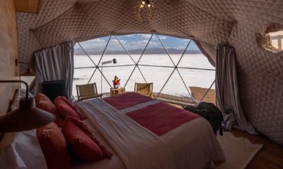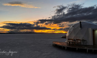 Imaginez six dômes luxueux, aussi blancs que la surface immaculée sur laquelle ils sont posés. Au loin le soleil se couche derrière les montagnes. Seul le vent vient s’immiscer dans la quiétude de l’immensité du Salar. Autour de vous, rien ne vient déranger la vue sublime sur cette étendue parfaitement plate. De l’aube au crépuscule, la lumière, les couleurs, les formes et les ombres évoluent au fur et à mesure que le soleil décrit son arc dans le ciel. Sommes-nous toujours sur la même planète ?
