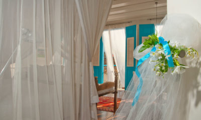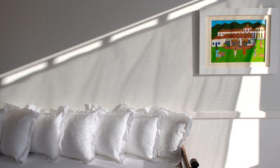La conception de l’éclairage met en valeur les meubles design de Zanine Caldas, Carlos Mota et Armando Cerello. La couleur turquoise qui donne son nom à l’hôtel se retrouve dans des éclaboussures subtiles à travers les locaux : des volets des fenêtres au canapé en passant par les peintures de Tiacho Baenninger -Tiacho est deux fois lauréat de la Biennale Arte Naif. Des sculptures de l’artiste local Pedro Malvão et une photographie originale signée par Thomas Farkas, un photographe hongrois élevé au Brésil, prises spécialement pour la maison, sont parmi les autres œuvres d’art remarquables.