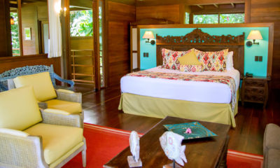 Les 18 chambres luxueuses sont intégrées dans un environnement naturel incroyable et sont construites à partir de bois dur précieux de récupération et de carreaux colorés fabriqués par des artisans locaux. Le design en plein air offre une vue imprenable sur l’océan et la forêt tropicale, permettant à la plus incroyable symphonie de sons des oiseaux, grenouilles, singes, animaux et les vagues qui claquent de vraiment sentir connecté avec l’ambiance naturelle.