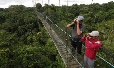 Être au sommet du monde sur la tour d’observation de 43 mètres, une plate-forme construite sur les branches les plus hautes d’un kapokier géant. De là, de magnifiques vues panoramiques de la forêt se déploient tout autour, tandis que les 500 espèces d’oiseaux enregistrées dans la région, y compris les toucans arc-en-ciel et les perroquets, deviennent faciles à repérer. Grimpez dans le nid des corbeaux pour vivre l’expérience à 360 degrés.