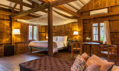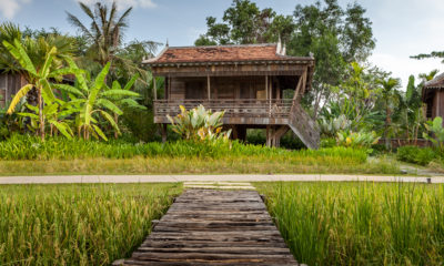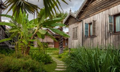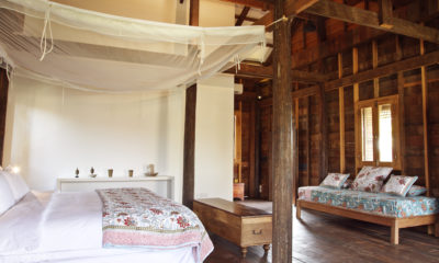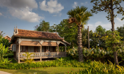 Repérées dans les campagnes cambodgiennes, démontées, transportées et remontées, les maisons sont toutes différentes par leur histoire et leur architecture. Les plus anciennes datent de la fin des années 1950. Si l’enveloppe extérieure a été conservée à l’identique, les intérieurs ont été aménagés avec soin par Marina Cardis, décoratrice de renom, qui a veillé à l’équilibre du décor et à la fonctionnalité de chaque maisonnette.