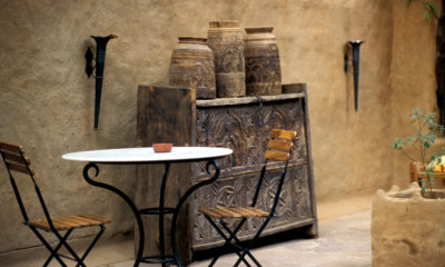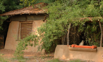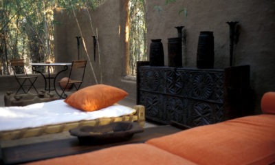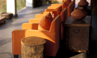 Les douze cottages, appelés ici, Kutiyas, ont été construits en s’inspirant du style local du centre de l’Inde et de l’architecture vernaculaire. Persiennes en bois, murs enduits à la main, sols en pierre, poutres apparentes, toits en tuiles faites à la main, tissus locaux aux teintes d’orange brulée, ainsi que des objets issus de l’artisanat local.