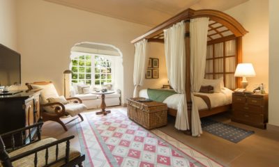 L’harmonie des lieux due au raffinement des teintes oscillant entre beige et ivoire, aux flambeaux en argent mis en applique, au lit à baldaquin paré de voilages grège et aux nombreuses alcôves vous replongent à l’époque somptueuses des maharajas.