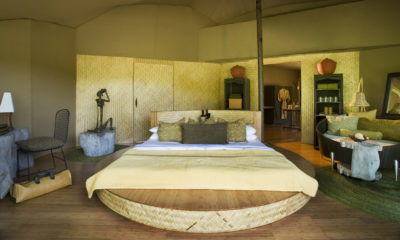 Les tentes, à la fois simples et luxueuses présentent un design contemporain, avec des parois et des sols en bambou compressé et des meubles faits main dans du bois exotique local.