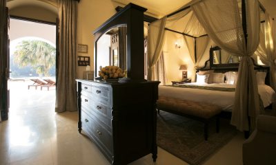 Le palais s’élève au milieu d’un vaste jardin planté de manguiers, de jasmin et d’œillets. Une grande véranda prolongée d’une piscine, un spa puisant dans la spiritualité indienne et enfin une dizaine de chambres minimalistes et luxueuses, rose lotus, jaune orangé, blanc jasmin, tons bariolés rappelant les offrandes jetées au Gange. Portant les noms de célébrités qui ont été invitées par le Maharaja dès 1835, chacune des seulement 10 Suites distille une ambiance typique de la culture et des traditions de la ville. Les murs sont décorés des tableaux du Maharaja et les meubles datent pour la majorité des années 1800. Le tout baigne dans un calme absolu à quelques minutes à peine des tumultueux ghats qui longent le Gange et qui font la réputation de cette ville inoubliable.