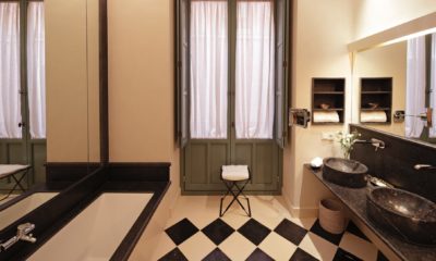 Certaines des chambres de l’annexe disposent de mini-cuisines, ce qui est très apprécié des familles. Les suites avec terrasse et piscine offrent le summum de l’indulgence (la chambre 17 est le joyau!), avec votre propre coin détente privé – piscine, canapé, minibar, musique, bougainvilliers exubérants et, bien sûr, vue sur la Giralda. Le nec plus ultra est le Penthouse, avec une grande terrasse d’un côté, une piscine de l’autre, et un bain de marbre noir indépendant.