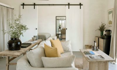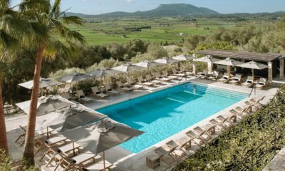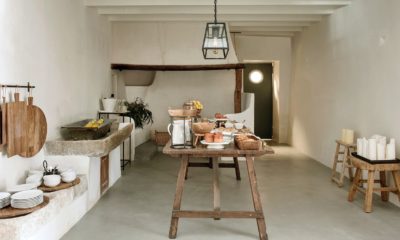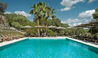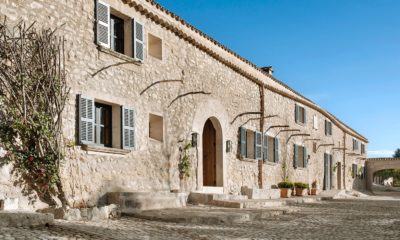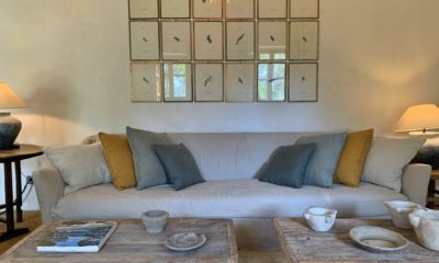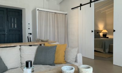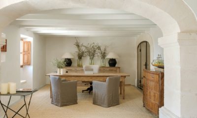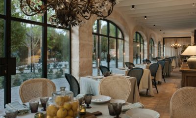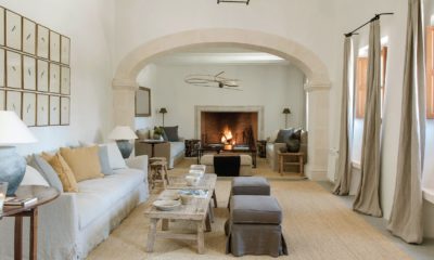 Le bâtiment principal a reçu une subtile touche contemporaine, tout en conservant sa splendeur historique et en créant un sentiment de modernité grâce à un mobilier et une décoration tendance. Dans le coin salon par exemple, des canapés en lin, des tables en bois et des ornements en faïence sont disposés autour d’une cheminée ouverte. Une sculpture abstraite en bambou de l’artiste contemporain catalan Laurent Martin est suspendue au-dessus de la cheminée.