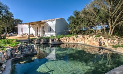 C’est à une vingtaine de minutes du port de Mahón, la capitale de l’île, dans un parc de 300 hectares parsemés d’oliviers sauvages, de pistachiers, d’immortelles, de figuiers de barbarie, de vignes, et de plantes aromatiques, que Frédéric Biousse et Guillaume Foucher ont choisi d’installer deux nouvelles adresses tendances, qui feront indiscutablement les beaux jours de l’île – Santa Ponsa, et Torre Vella.