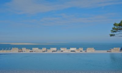 L’hôtel, ses chambres, son restaurant et sa terrasse sont les premières loges de cette mer intérieure, « théâtre naturel avec des dimensions gigantesques, où se joue en permanence des forces telluriques ». On peut y admirer la géométrie variable du Banc d’Arguin, immense langue de sable qui affleure selon les heures et, relire dans le langage de la réalité les plus belles pages de « L’homme qui rit » de Victor Hugo, dont les évocations de la lune, de l’attraction, des courants pernicieux et bénéfiques, ont inspiré la création des tapis, que Philippe Starck a dessiné pour les chambres de l’hôtel.