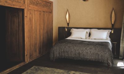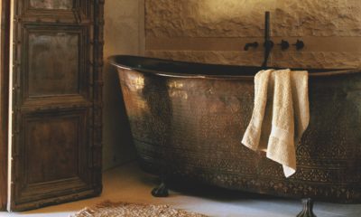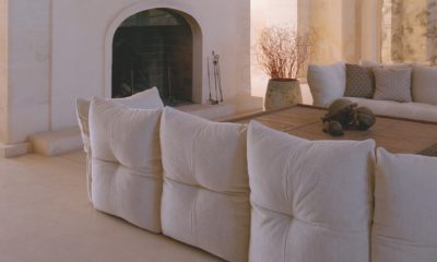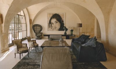 Les meubles ont été chinés de l’Isle-sur-la Sorgue jusqu’en Inde, cuirs tressés, patines, jolies portes en bois sculptées, couleurs chargées de pigments naturels, se combinent aux œuvres d’art contemporaines. Avec ses teintes chaleureuses, sablées, comme baignées par le soleil, le mas tout entier invite au farniente.