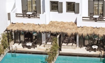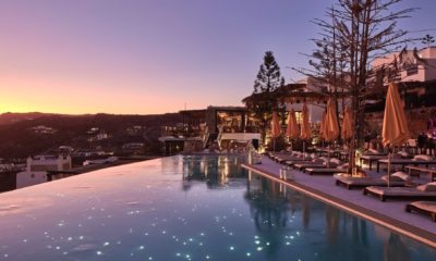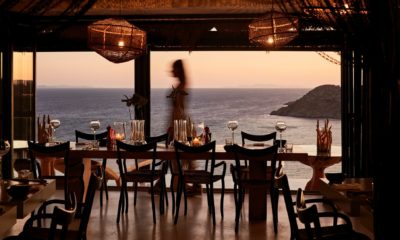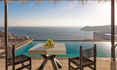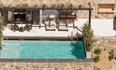 Les blocs blanchis à la chaux, accrochés à la roche au-dessus de la plage d’Elia Beach, offrent une vue plongeante sur la mer et les îles à l’horizon. Mêlant architecture traditionnelle, matériaux modernes, objets d’art originaux et mobilier contemporain, ce « lieu idéal » invite à profiter du meilleur de Mykonos : activités nautiques sur la plage privée, farniente autour de la piscine à débordement qui semble suspendue au-dessus de la mer, ou détente sur la terrasse.