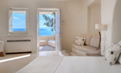 Les courbes douces et les arcs sculptés se mêlent à une palette de couleurs discrètes et à des espaces rehaussés de lumière glorieusement ouverts sur les extérieurs. Toutes les suites et villas s’ouvrent sur une terrasse ou un balcon avec pour seuls points de chute le bleu profond de la mer Égée et le volcan. Exploitant sans effort l’élégance de la simplicité, les suites sont décorées de pièces en bois flotté, de textiles en lin et d’intrigants motifs sculptés sur les murs.